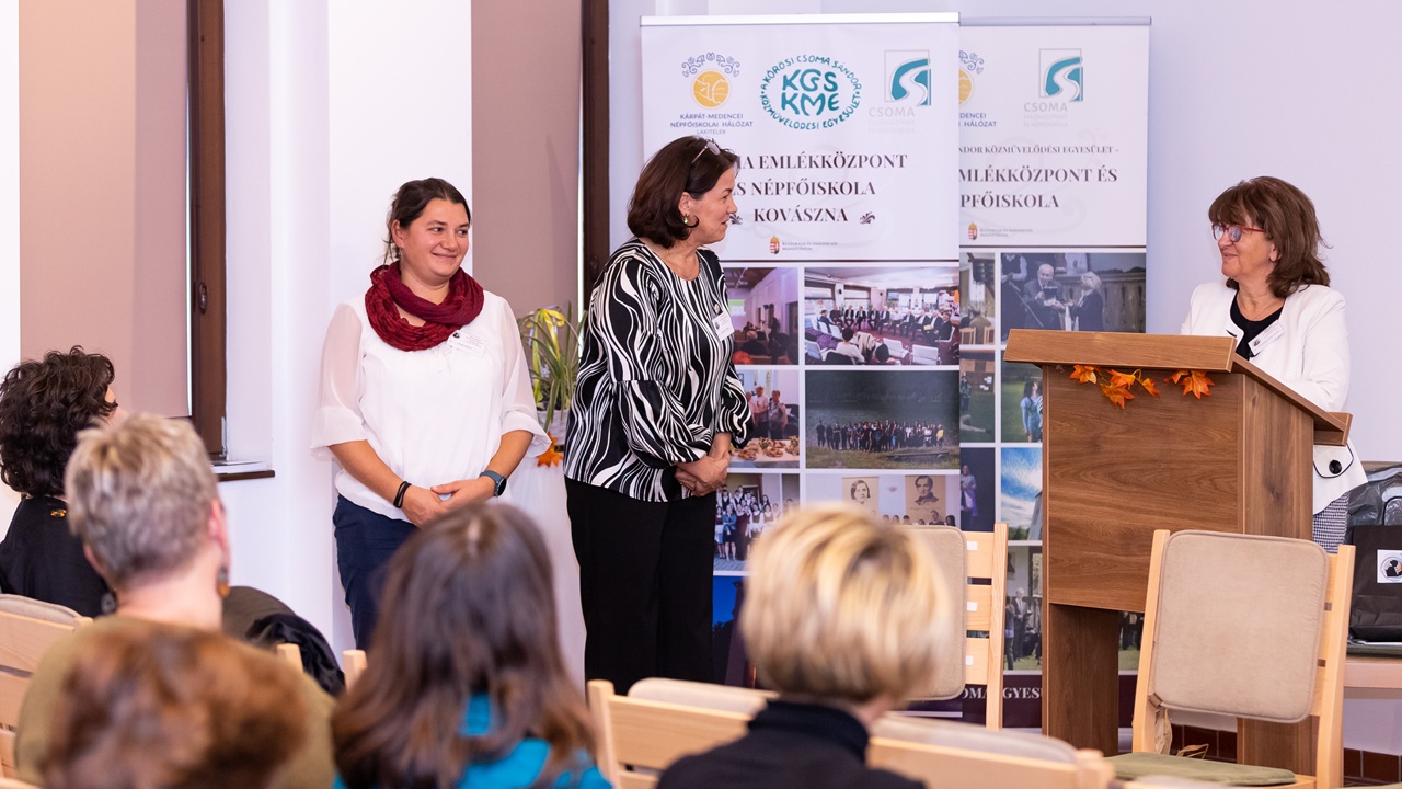 Első alkalommal adott otthont Egyesületünk székháza a kovásznai Csoma Emlékközpont az immár hetedik „Olvass többet! Határtalanul–magyarul” nemzetközi olvasásnépszerűsítő konferenciának. Megtisztelő feladat volt a sikeres rendezvény szervezőit-előadóit Csoma szellemében, e térben Kovásznán tudnunk: az idén 35 éves Kőrösi Csoma Sándor Közművelődési Egyesület és Népfőiskola házigazdaként és partnerként a magyar nyelvű olvasáskultúra szolgálatában fogadta az erdélyi és magyarországi szakmai közösséget. (Fotón, b.-j.: Varga Emese, Molnár Júlia, Peternainé Juhász Zsuzsa / Kerekes Csanád felvétele.)