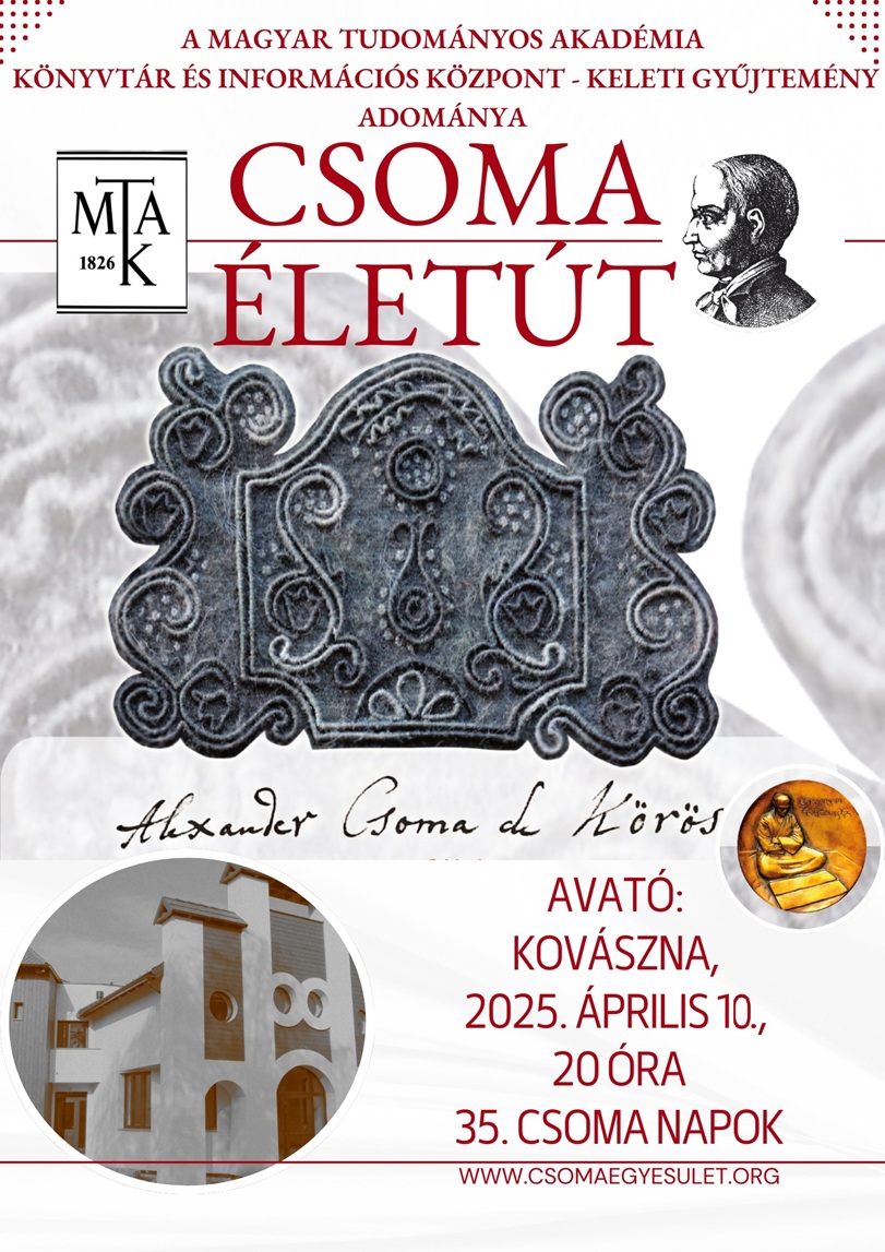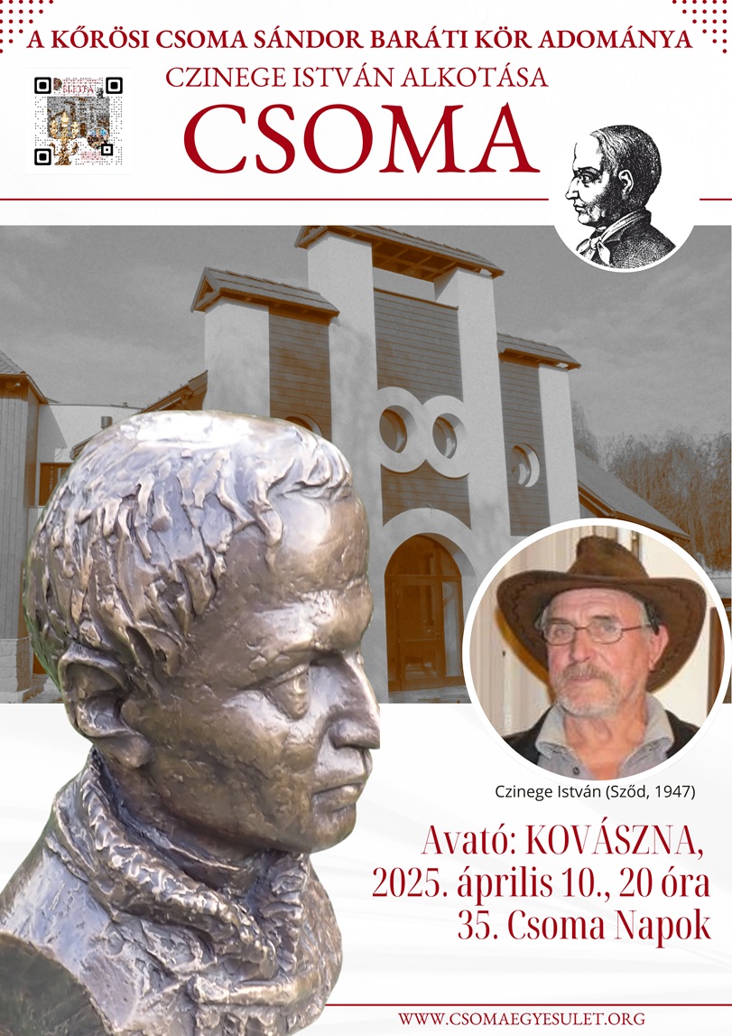 Április 10-én, csütörtökön, a 35. Kőrösi CSOMA Sándor NAPOK, Kovászna-Csomakőrös 7 órakor kezdődő fáklyás megnyitóját követően - terveink szerint 8 órától -, ünnepélyes szobor- és kiállításavatásra hívjuk Önöket székhelyünkre, a Piliske utca 2. szám alatt található Csoma Emlékközpontba. Mit avatunk? Bemutatjuk a részleteket.