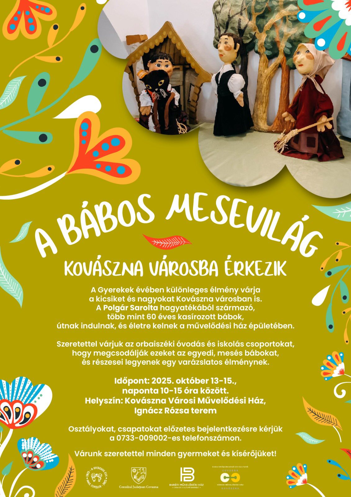 Bábos mesevilág Kovásznán A Gyerekek évében különleges élmény várja a kicsiket és nagyokat Kovásznán is. A baróti Polgár Sarolta hagyatékából származó, több mint 60 éves kasírozott bábok újra útnak indulnak, és életre kelnek, ezúttal Orbaiszék központjában, a művelődési ház épületében. Várják az óvodás és iskolás csoportokat, hogy megcsodálják az egyedi, mesés bábokat, és részesei legyenek egy varázslatos élménynek.