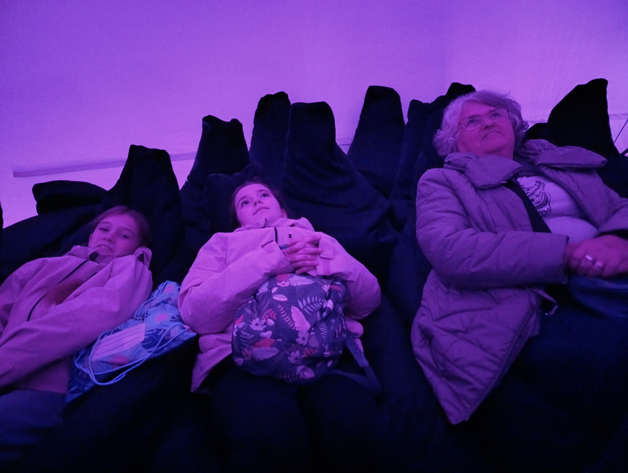 „Iskolában nem volt lehetőségünk magyar történelmet tanulni. Most, hogy nyugdíjasok vagyunk, bepótoljuk mindazt, ami kimaradt” – mondja Évike (fenti, rózsaszín-fényű fotónkon, a Palnetáriumban – unokáival, akiknek egyébként gyönyörű énekét rendezvényünkön is hallhattuk: visszahallgathatják itt. Sok sikert kívánunk, lányok, a további vetélkedőkön, versenyeken!).
